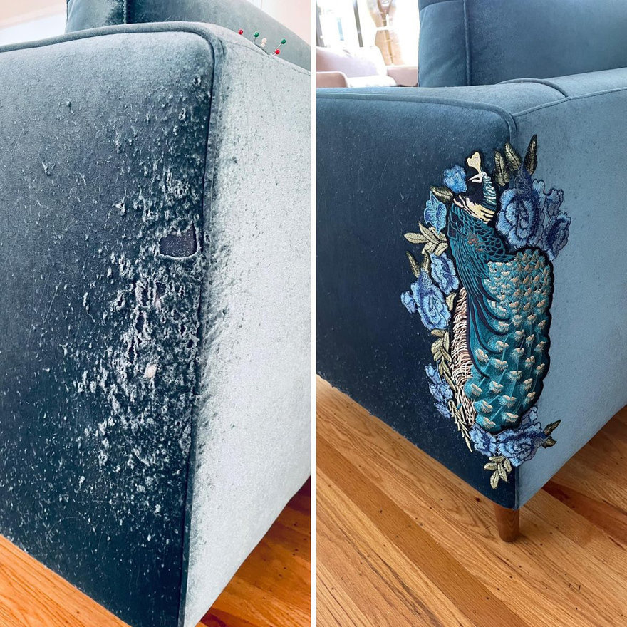 However, if you'd prefer to avoid the problem altogether, you could draw your cat away from the sofa with a scratching post. To prevent living room eyesores, cat furniture company Mau offers this Kona Scratcher, a bent plywood sidetable that conceals a scratching surface:A Smart Production Hack for Welding a Pegged Grid