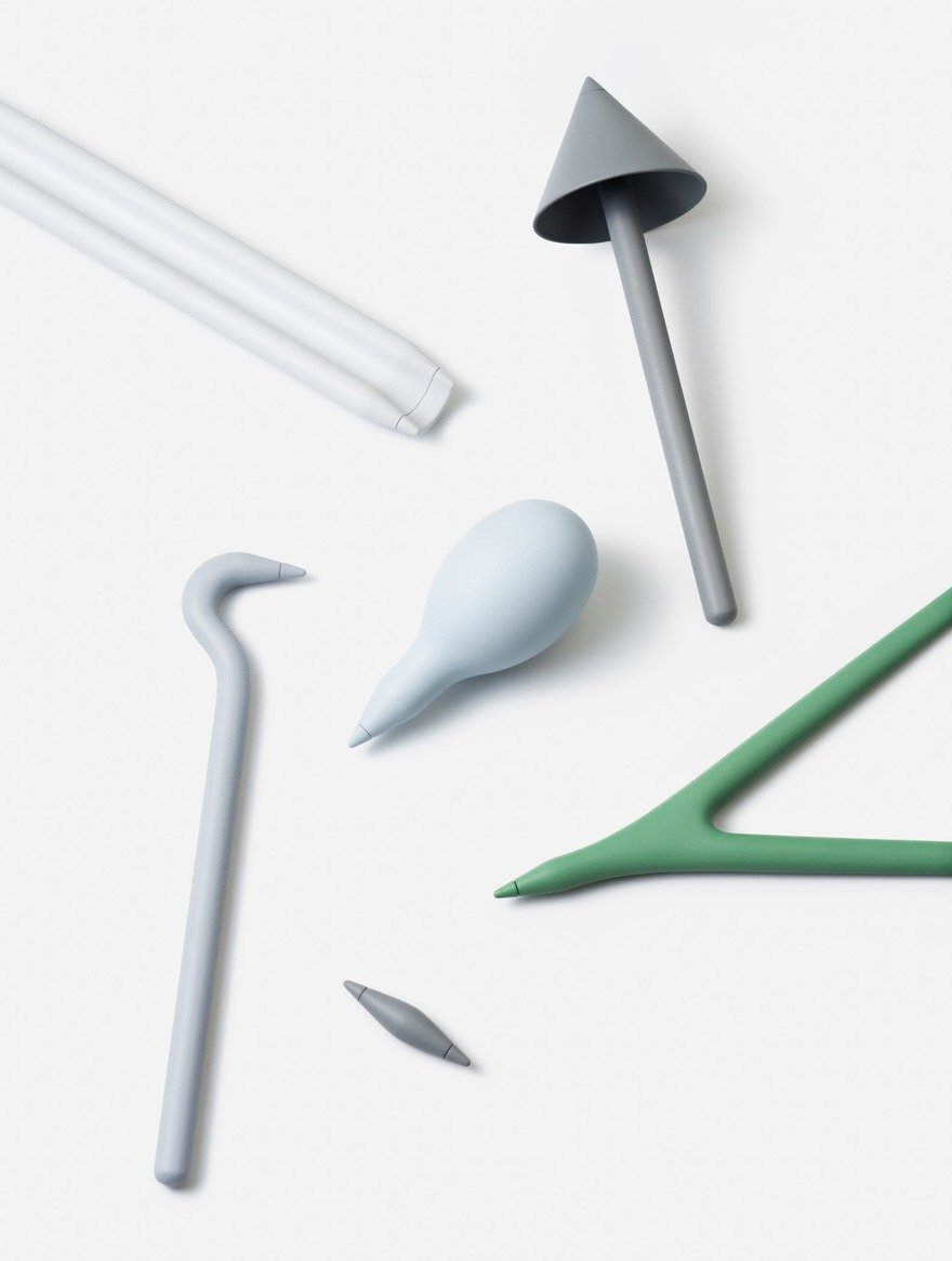 A handsome two-compartment bathroom waste bin, by industrial designer DaniIndustrial Design Research: Form Studies for Writing/Drawing Utensils, by BKID