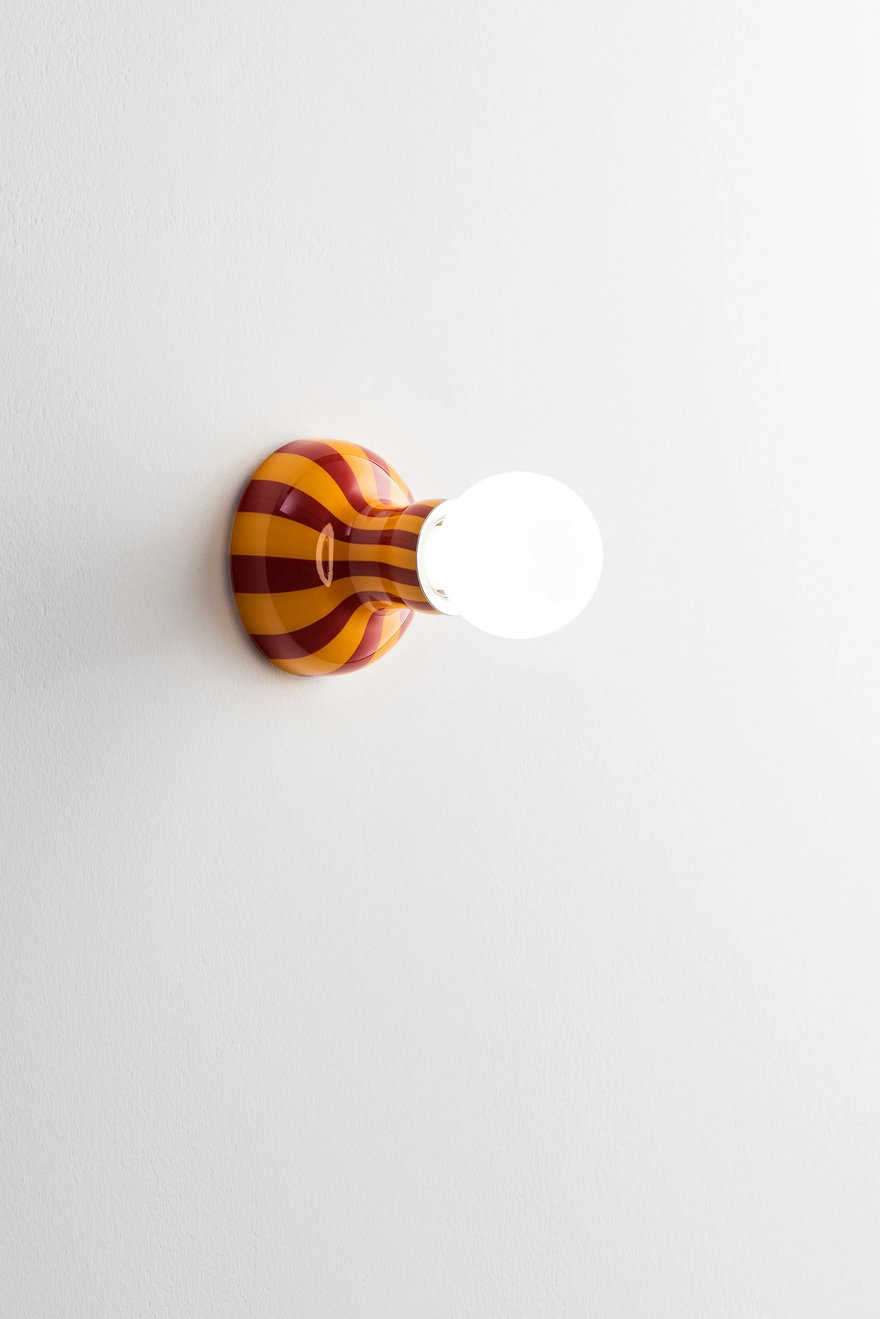 The sconce is actually blown as a single piece of glass. To achieve the two colors, the artisans use the Venetian a canne ("with cane") technique. This is where separate glass rods (canes) are assembled into a single mass, then blown into shape.Industrial Designer Martina Claesson's Plinth Stool